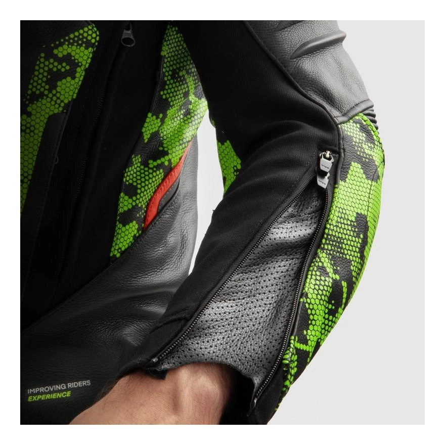 Kurtka skórzana REBELHORN VELOCE CAMO BLACK/GREEN/FLUO RED