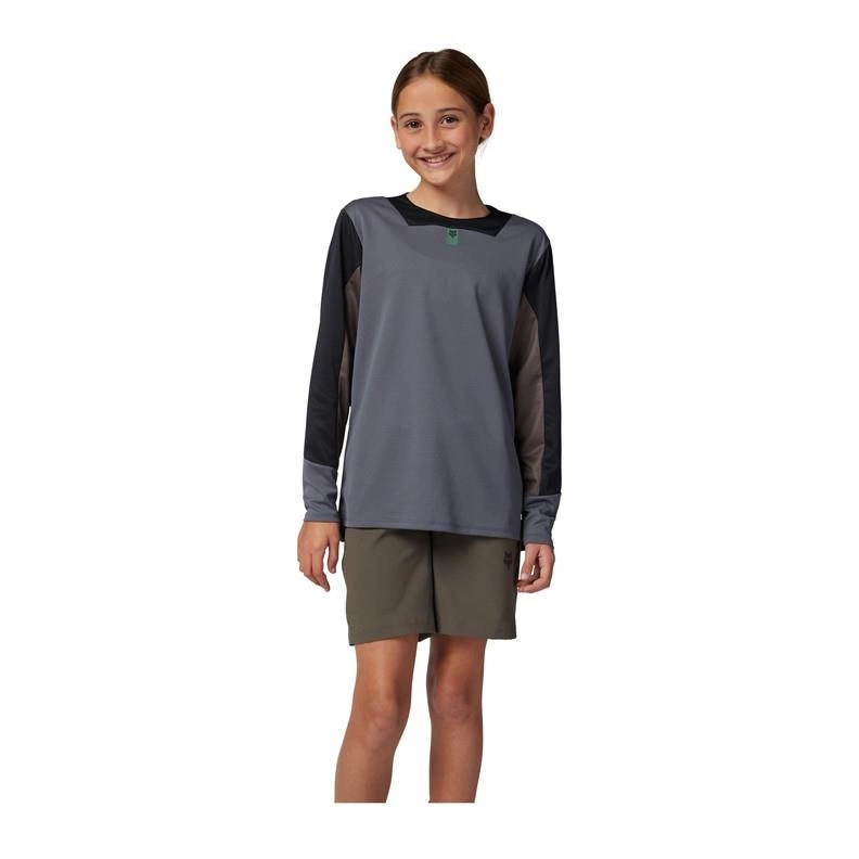 Koszulka rowerowa dziecięca FOX JUNIOR DEFEND Z DŁUGIM RĘKAWEM GRAPHITE grafitowy