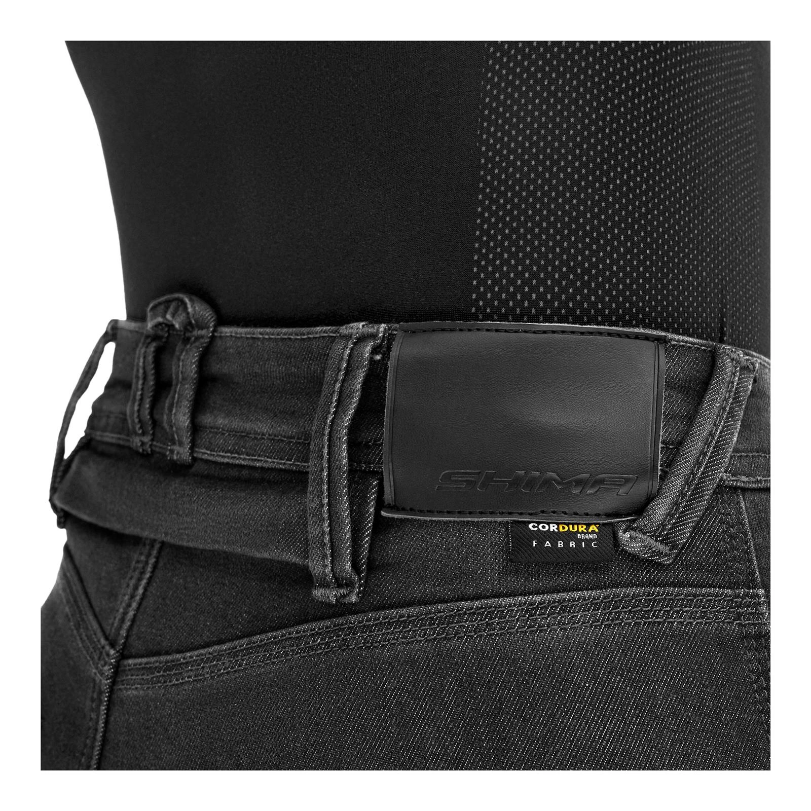Damskie jeansy motocyklowe Shima Ridge Lady, posiadające certyfikację AAA, zapewniają najwyższą ochronę. Wyposażone w elastyczne protektory kolan GFLEXX CE-level 2, które można precyzyjnie dopasować za pomocą rzepów w zewnętrznej kieszeni, oraz oddychające ochraniacze bioder AirForce CE-level 1.